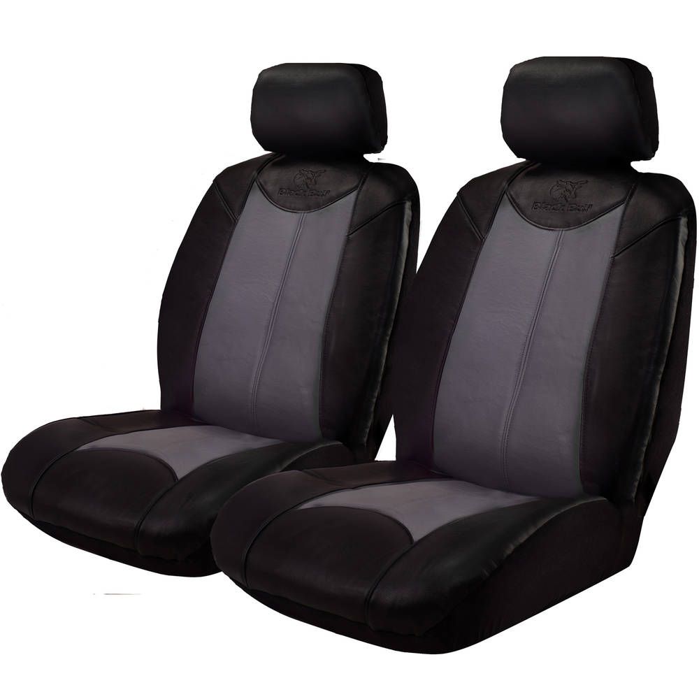 Get that leather look with Black Bull seat covers. Made from a strong and durable vinyl, hard wearing and easy to wipe clean of any stains or spills. Each seat comes in two pieces for a better fit. Front seat covers include rear map pockets. Velcro ties are used to secure seat covers.