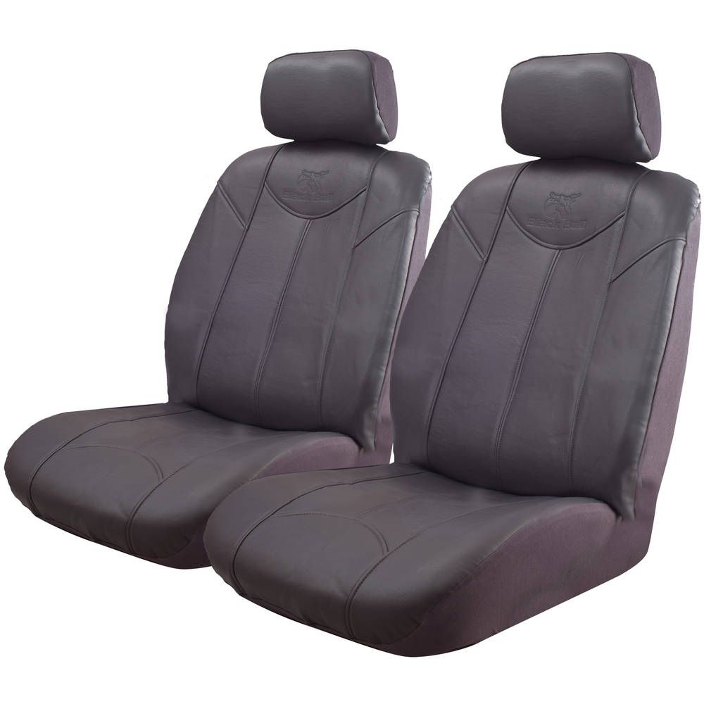 Get that leather look with Black Bull seat covers. Made from a strong and durable vinyl, hard wearing and easy to wipe clean of any stains or spills. Each seat comes in two pieces for a better fit. Front seat covers include rear map pockets. Velcro ties are used to secure seat covers.